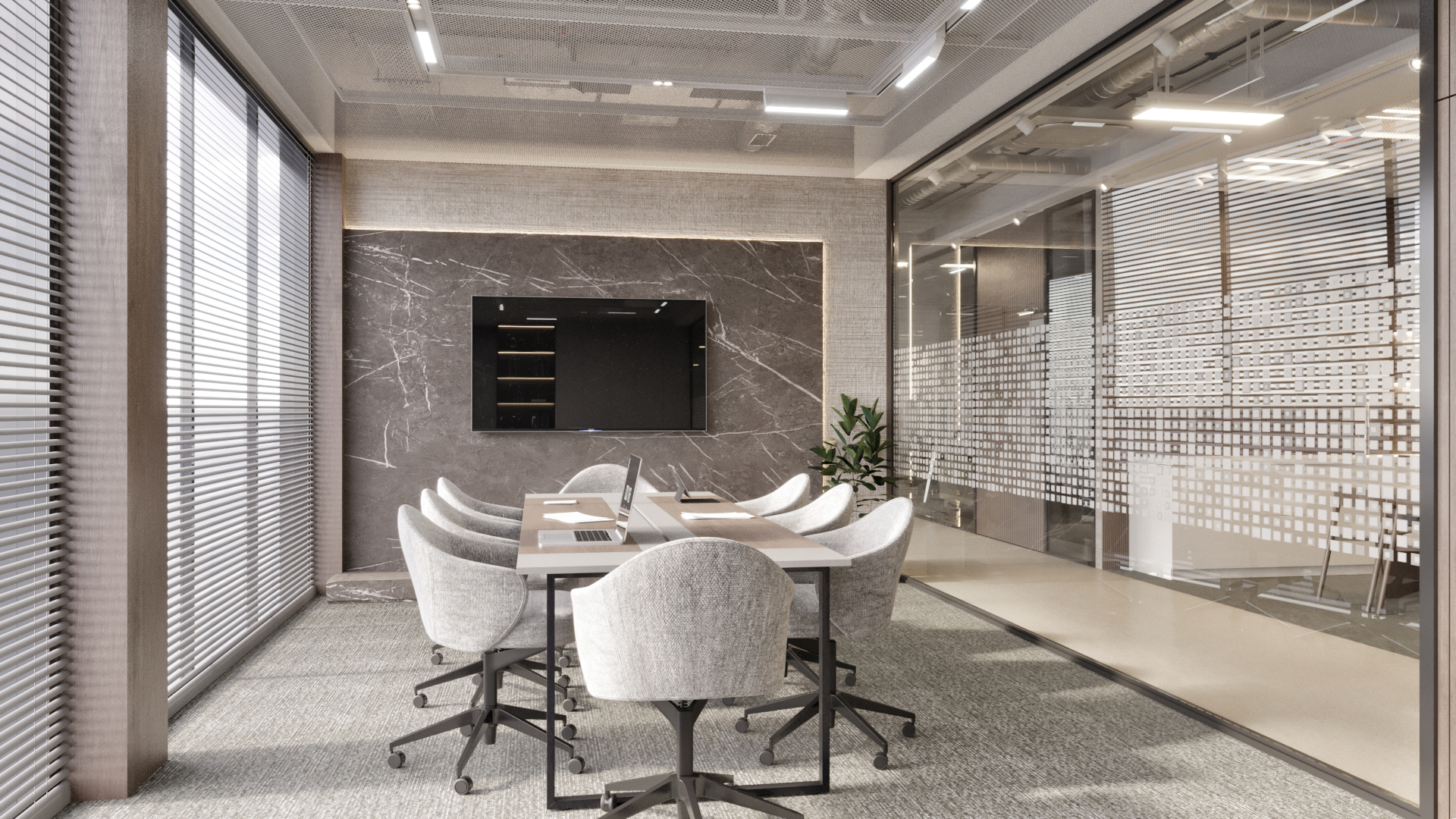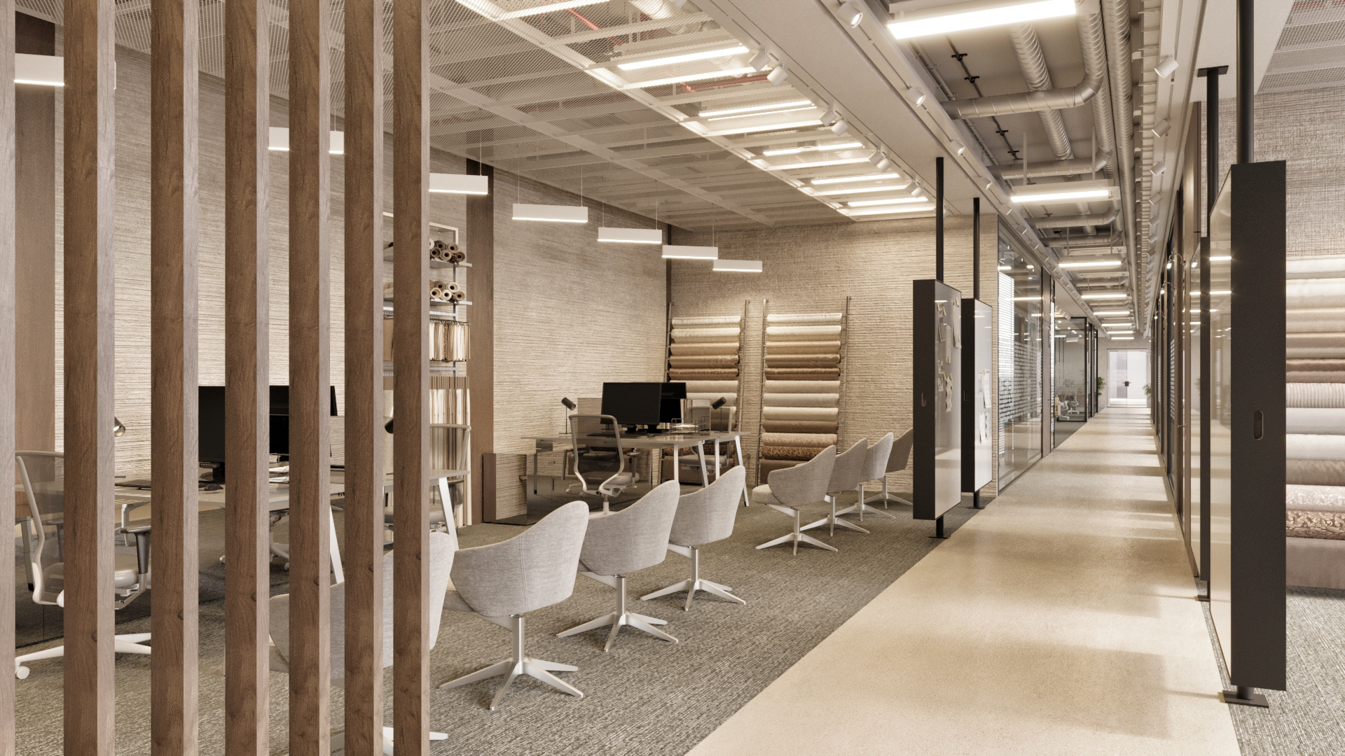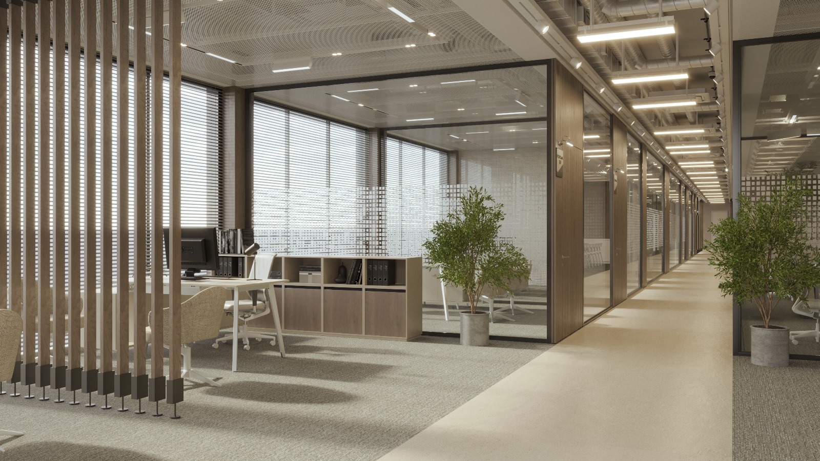 Projenin iç mekan tasarımlarında, estetik, fonksiyonellik ve sürdürülebilirlik ön planda tutularak modern ve verimli çalışma ortamları yaratılmıştır. İç mekan tasarımlarında çevre dostu ve sürdürülebilir malzemeler kullanılmasına özen gösterilmiştir.